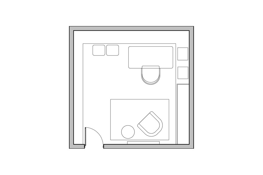 I created a focused desk area with practical storage and a separate reading corner with comfortable seating. Because the room lacked natural light, I used soft neutrals, warm wood tones and layered lighting to brighten and lift the atmosphere. Careful organisation ensured both users had space for their belongings, resulting in a flexible, uplifting study that feels far less like a basement and much more like a serene shared workspace.